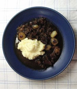 När vi slog oss ner med faten framför oss såg vi andäktigt ner. Vi tog en varsin tugga. Det frasade mellan tänderna. Konsistensen var krasande och len samtidigt, dessutom med en oanad lätthet, som vore det invispad luft i fettvecken. Vi såg upp på varann. Sa ingenting. Våra stora blanka ögon matchade vår hänförelse. Vi tog en tugga till. Fras, fras. Den fettnötiga sältan fyllde hela munnen, hela huvudet. “Herregud” sa jag. “Ja” mumlade han. Vi testade de olika senapssorterna. Tog en äppeltärning. “Det finns inga ord” sa jag tyst. Han skakade instämmande på huvudet. Munnen full med grisfett. Huvudet fullt med fettlycka.