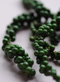 Om du inte gör av med all färsk grönpeppar kan du doppa kvistarna hastigt i kokande vatten, torka av dem och sedan låta dem  torka den på ett varmt luftigt ställe. Hepp! så har du svartpeppar med en ovanligt lätt och mild arom.
