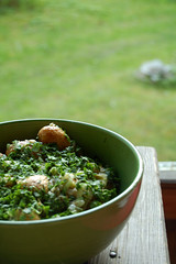 Servera potatisen i en skål och strö rikligt med hackad persilja över.