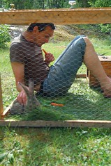 Och vilken snygg kaninbur va? Den har han snickrat ihop. För min skull*. Och dessutom höjt taket på, när det stod klart att det var belgiska jättar den skulle rymma.