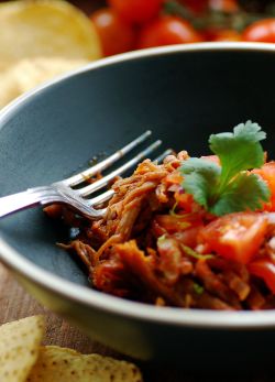 6. Mosa och luckra upp köttet genom att dra i det med en stor gaffel. Blanda med såsen. Smaka av med lite mer whisky, spiskummin och chili om det behövs. Köttet blir ännu godare om det får stå till sig över natten. Värm eller ljumma köttet före servering.